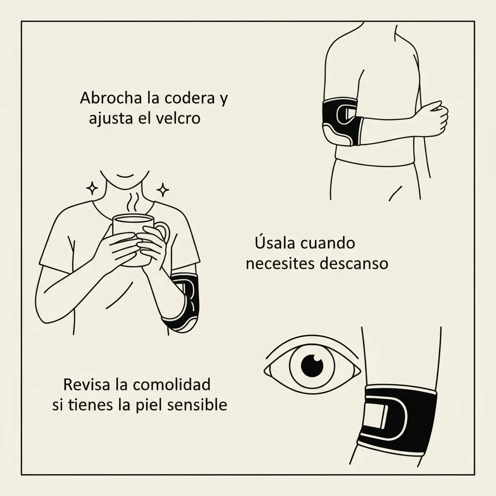 Ajuste ergonómico: sistema de velcro adaptable a diferentes tamaños de codo.