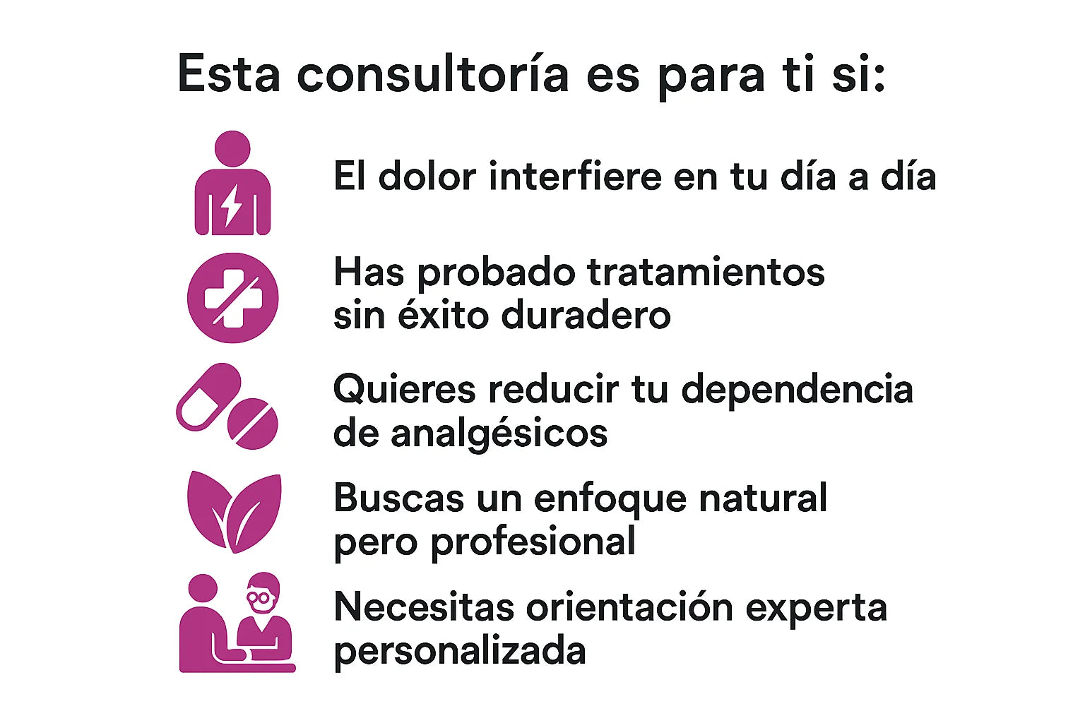 Si llevas meses (o años) arrastrando dolor y los tratamientos convencionales no te están dando resultados duraderos, esta consultoría es para ti.