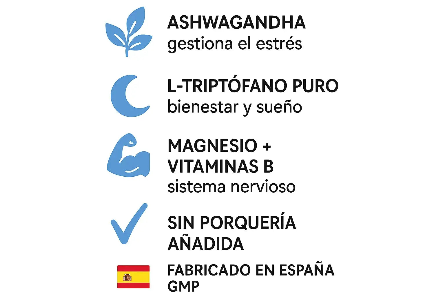 💊 ¿Puedo tomarlo con otros medicamentos? IMPORTANTE: Si tomas antidepresivos, ansiolíticos o medicación para dormir, consulta con tu médico. El triptófano puede potenciar estos efectos.