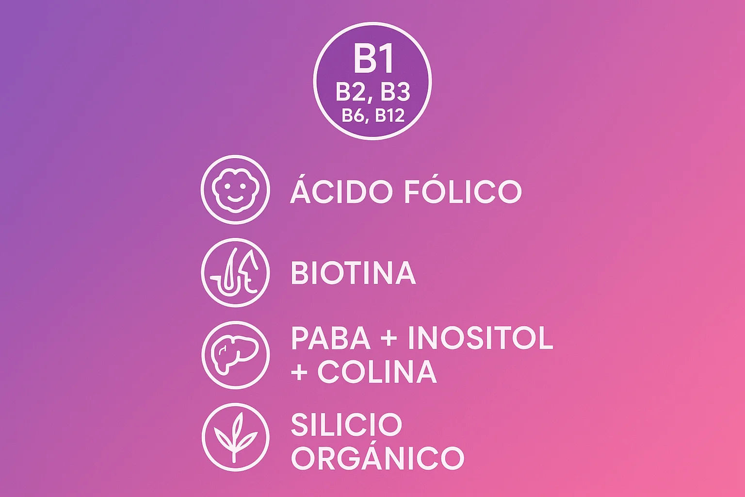 ✔️ Con colina, inositol y PABA, menos habituales en otros complejos